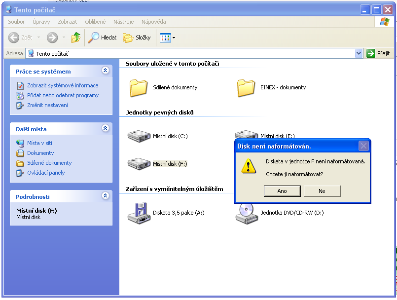 No ale podle mě ty soubory nejsou ani smazané.. v tom linuxu šly vždycky normálně vidět a číst. Mám disky C, E, F před instalací linuxu na Cčko jsem zálohoval asi 40GB dat na to F: a nainstaloval linux.. prolémy nastaly až když jsem chtěl linux přeinstalovat zpátky na Windows (řešil jsem to ve vlákně linux) taky mi to při instalaci psalo, že je C: vadné... pomohlo to fix mbr (ale během potíží s tím instalováním jsem zbývající 2 disky radši uplně odpojil) no ted po týdnu na XP jsem ty disky zapojil a F: dělá, to co popisuju.